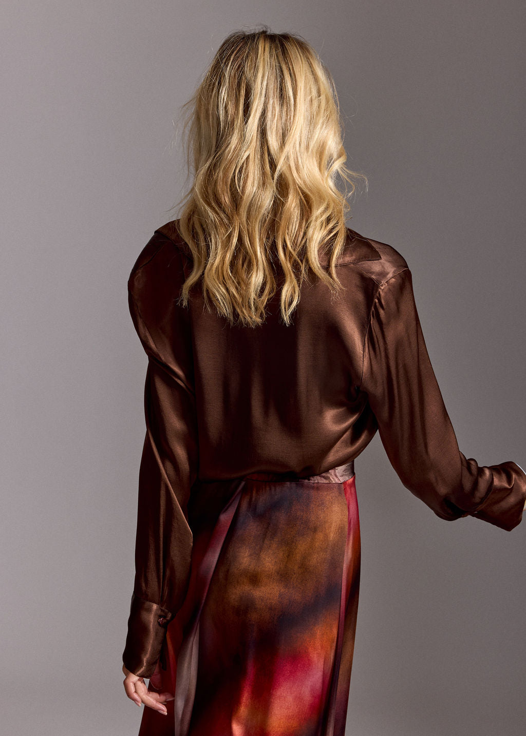 Chemise basique FAB Coffee – Viscose satinée & col chemisier épuré | Lauren Vidal