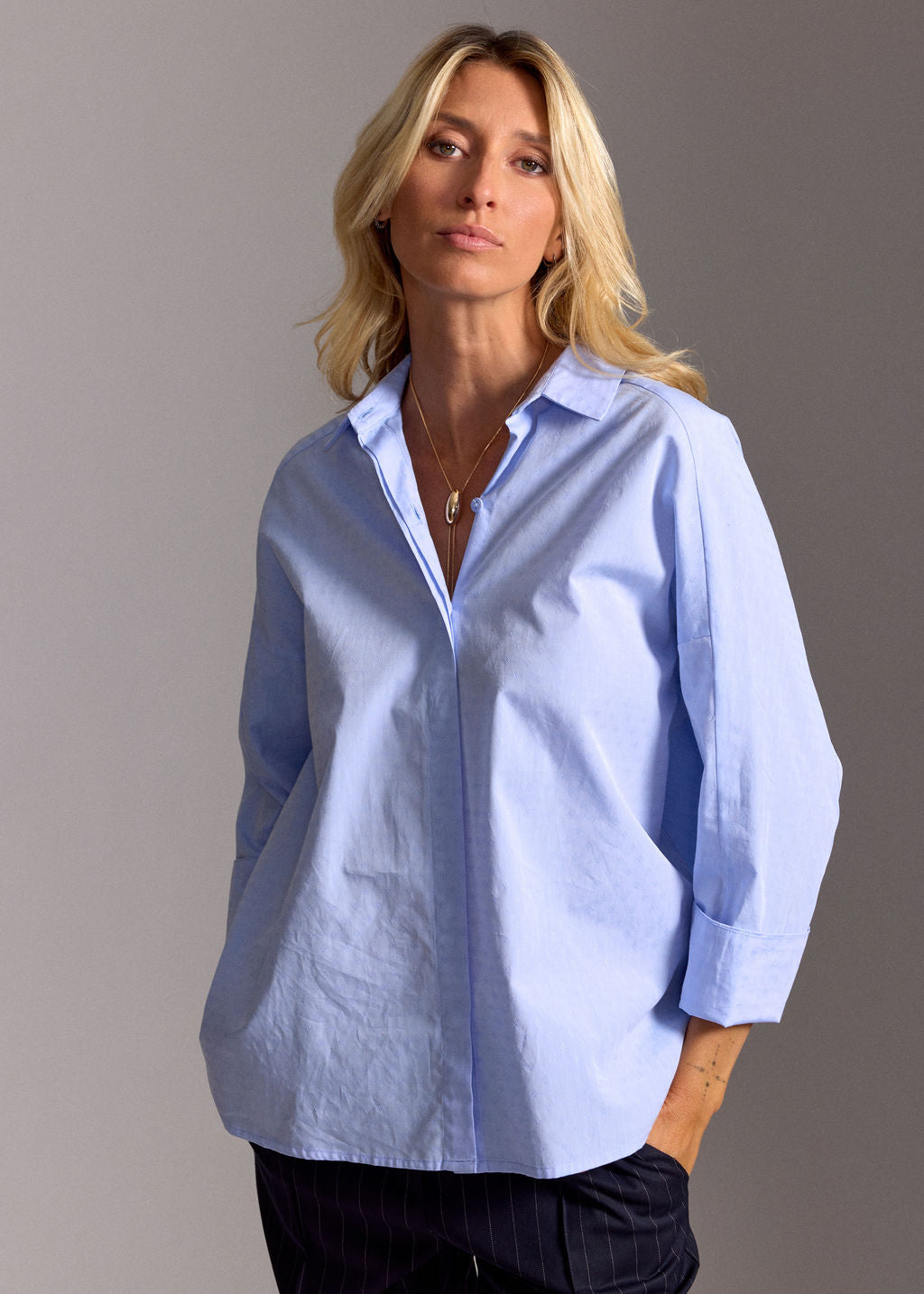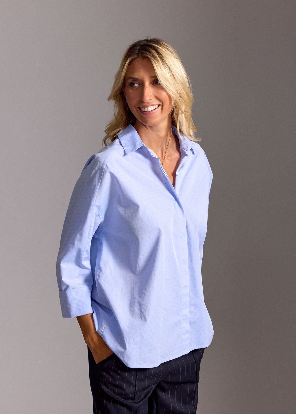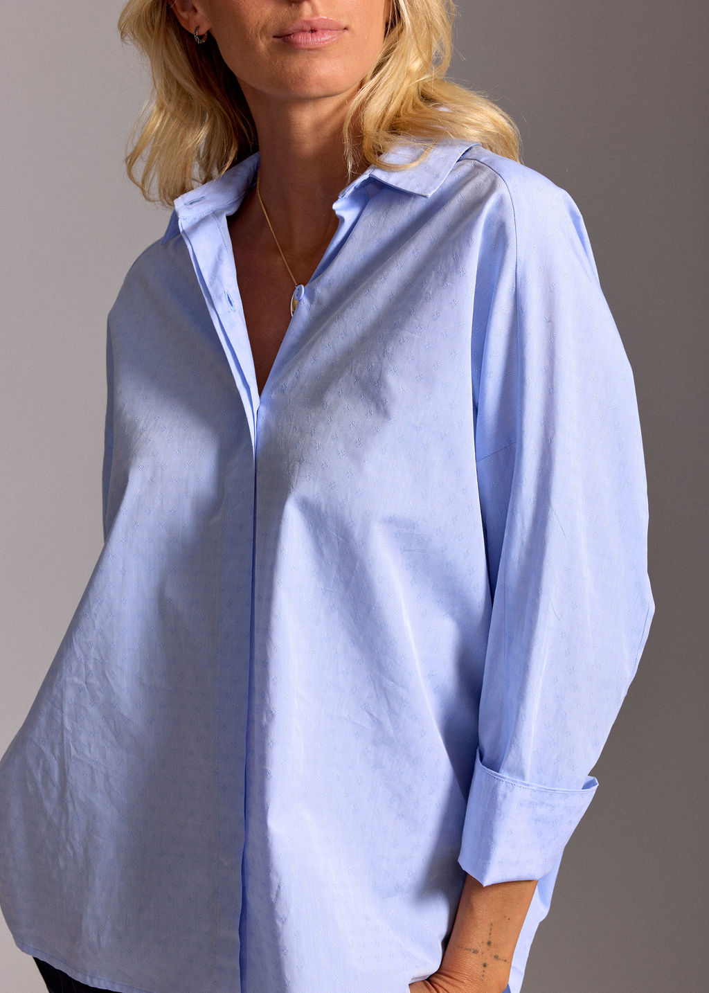 Chemise Bilba Ciel en popeline jacquard – Coupe courte ample doublée | Lauren Vidal